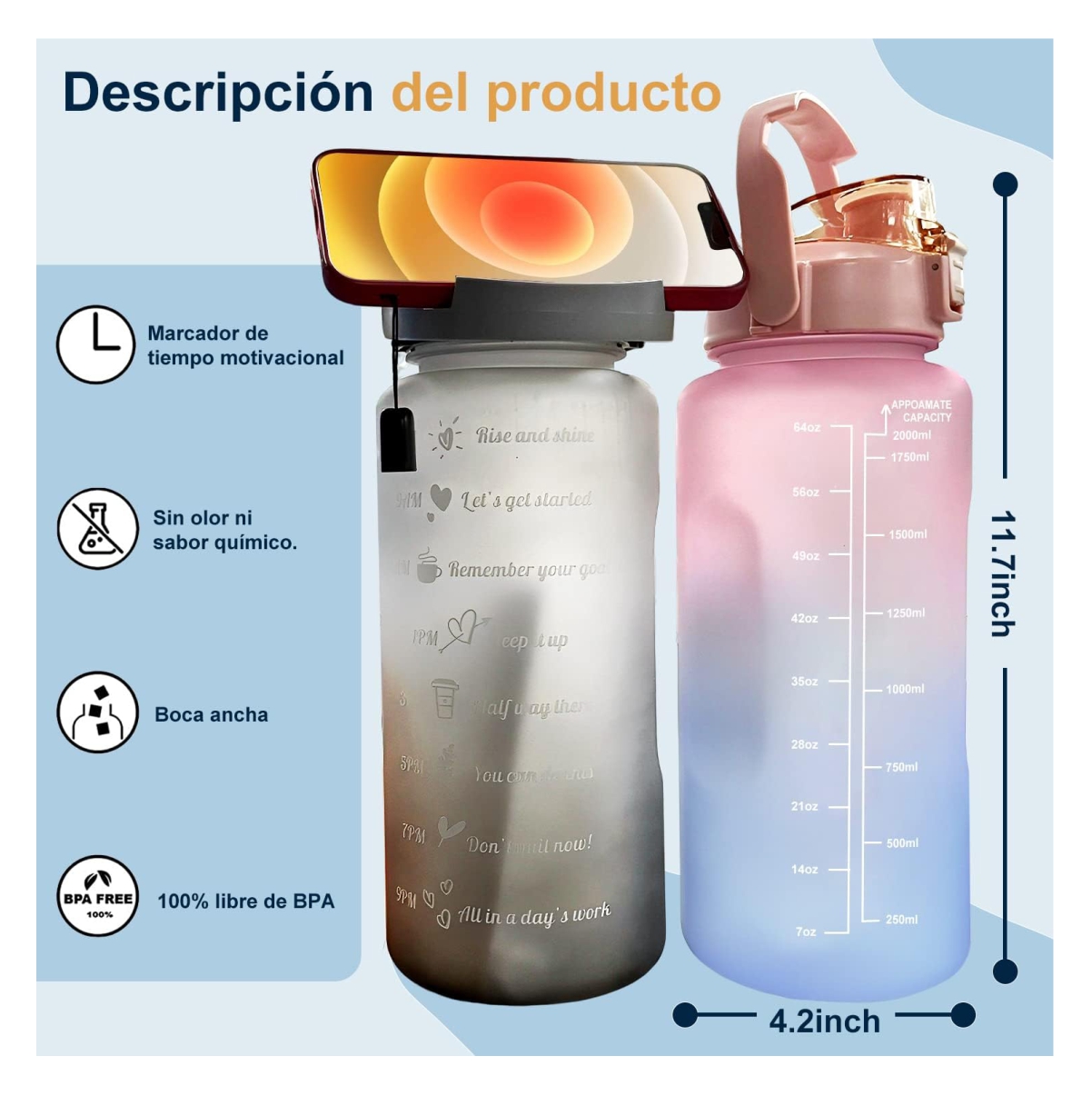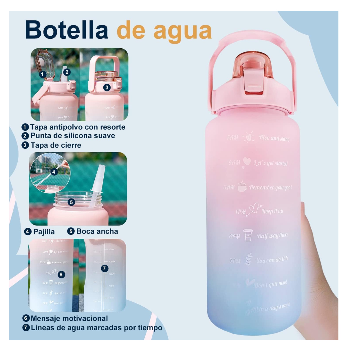 ¡No dejes que la deshidratación te frene! Haz clic y asegura tu Botella Motivacional de 2 Litros hoy mismo.