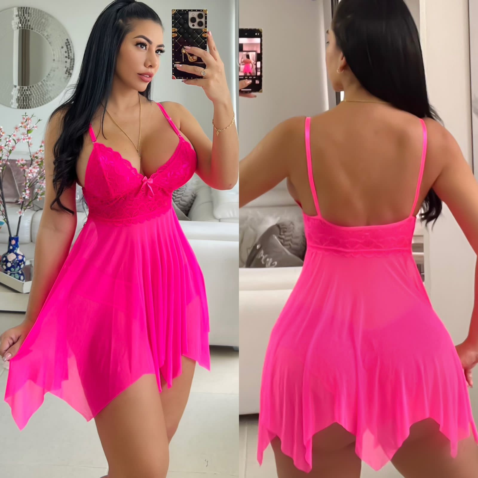 ¡Despierta tu sensualidad con la pieza más romántica y seductora de nuestra colección! Este Babydoll de Encaje Fino es más que lencería; es una obra de arte diseñada para realzar tu feminidad y cautivar los sentidos. La caída suave y el encaje de alta calidad fusionan delicadeza, sensualidad y lujo en un diseño irresistible.