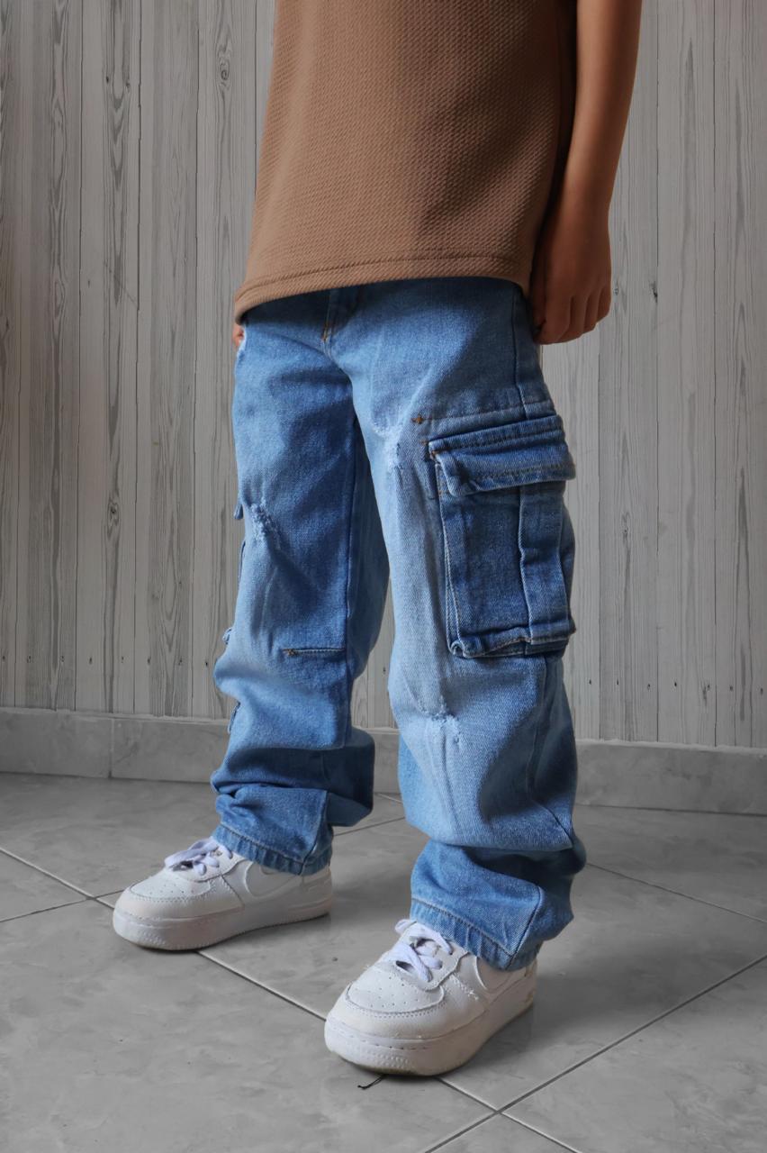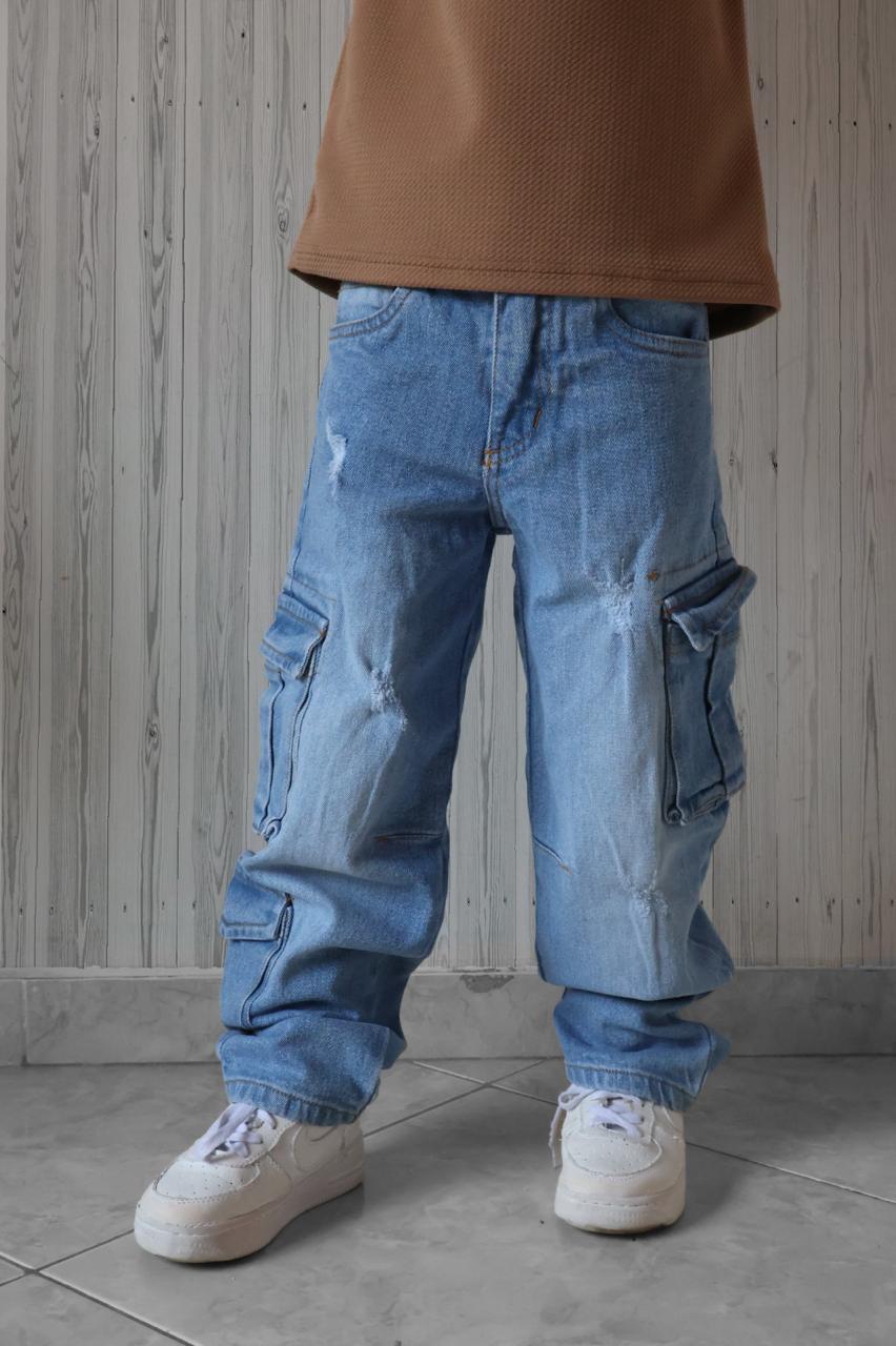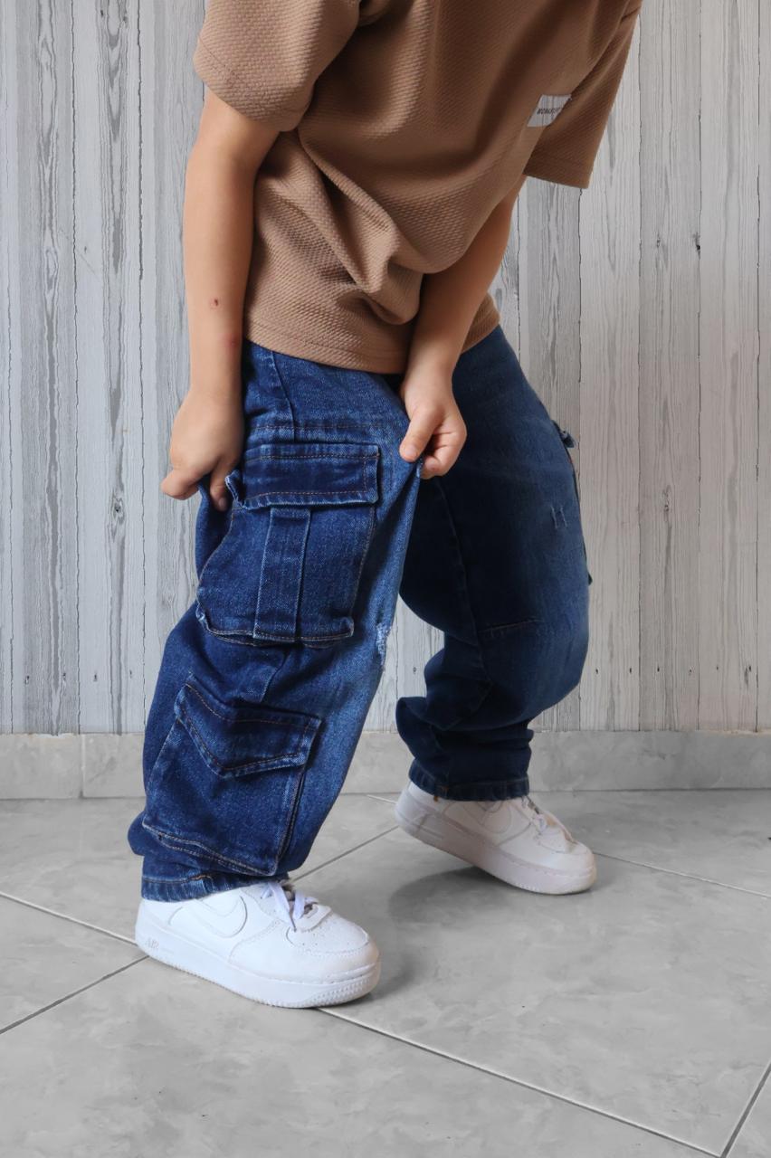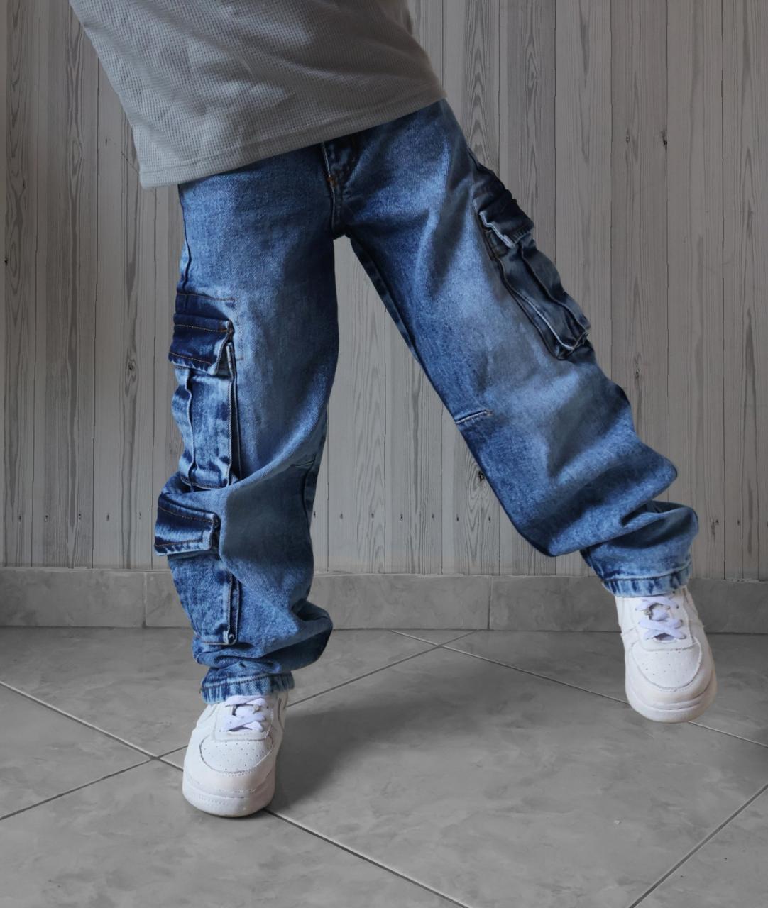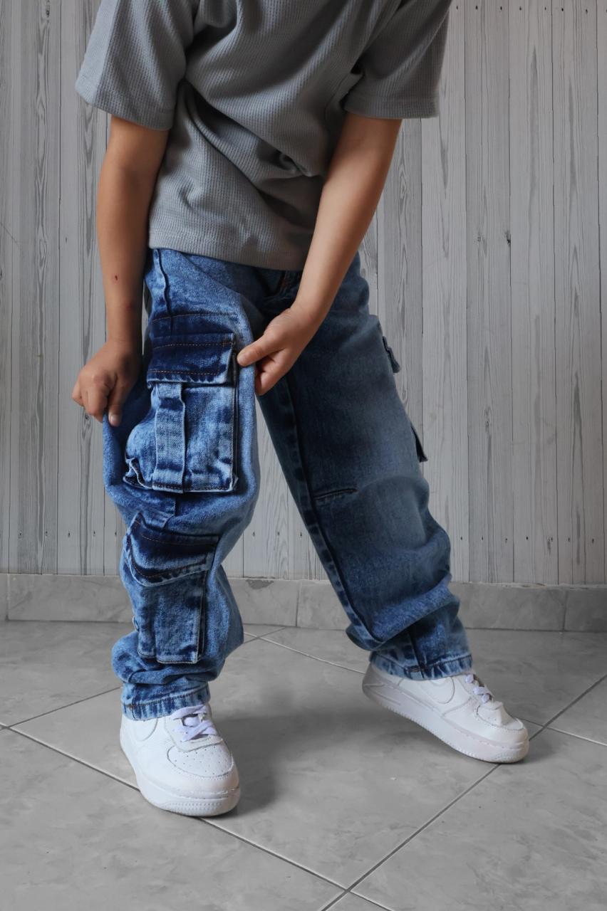 👖🚀 ¡Invencibles y a la Moda! Jeans Baggy Rígido Cargo para Niño – Resistencia Extrema 🚀👖