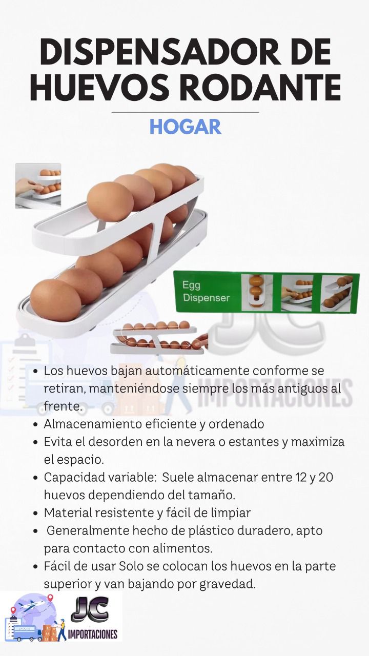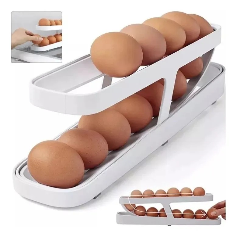 ¡El fin de los cartones de huevo voluminosos y desordenados! Este dispensador no solo organiza, sino que te ofrece un sistema inteligente para tener huevos frescos siempre al alcance de tu mano.