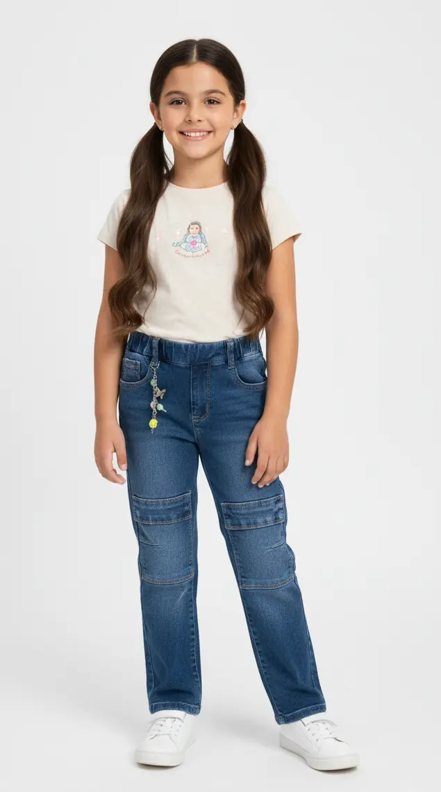 ¡Encuentra el pantalón que acompaña el ritmo de tu niña! Estos jeans de corte recto en Azul Oscuro son la prenda imprescindible: ofrecen un look clásico y moderno, con la flexibilidad y resistencia necesarias para todas sus aventuras diarias.