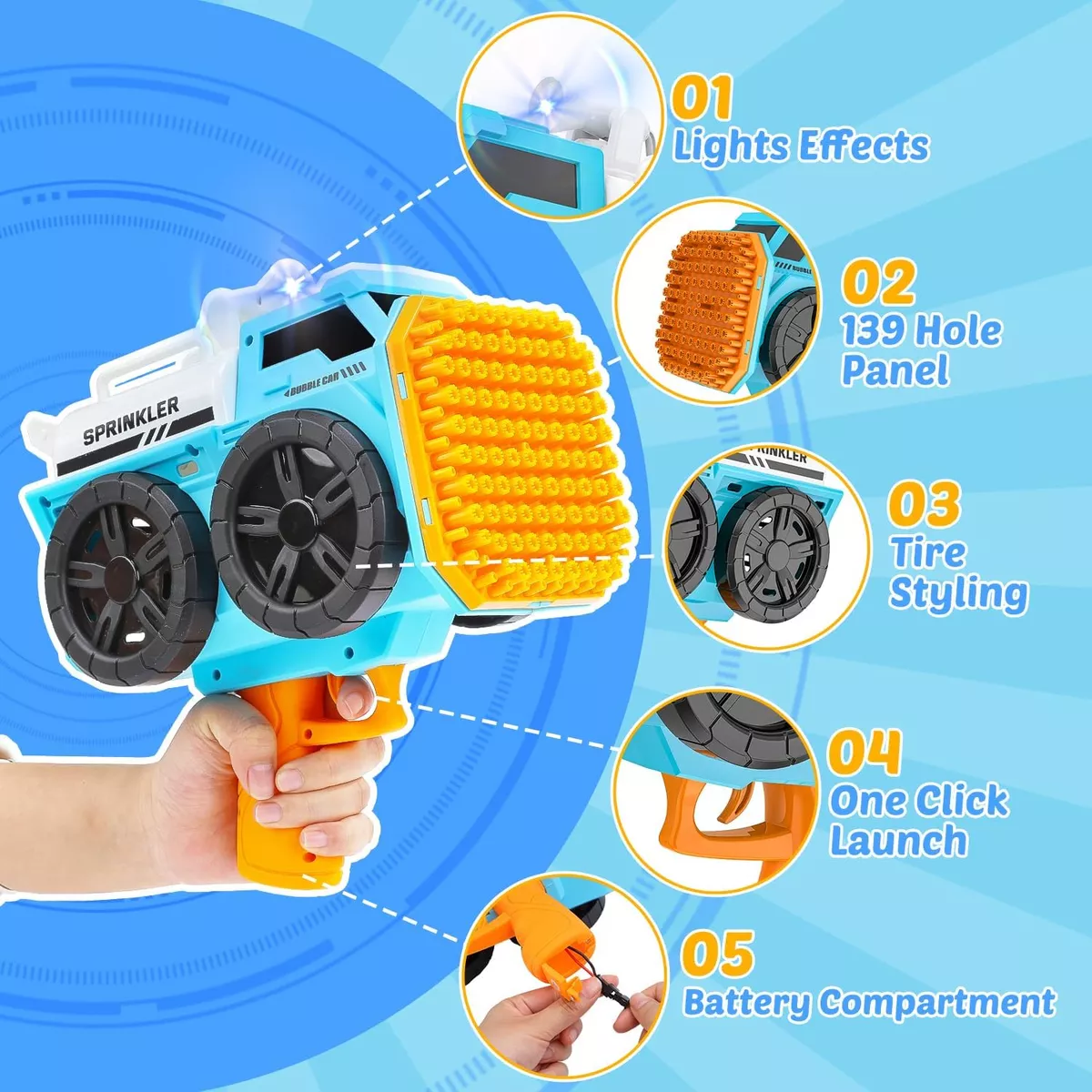 ¡Burbujas sin Fin! Con su diseño de 139 agujeros, lanza una ráfaga masiva de burbujas, creando un efecto visual asombroso.