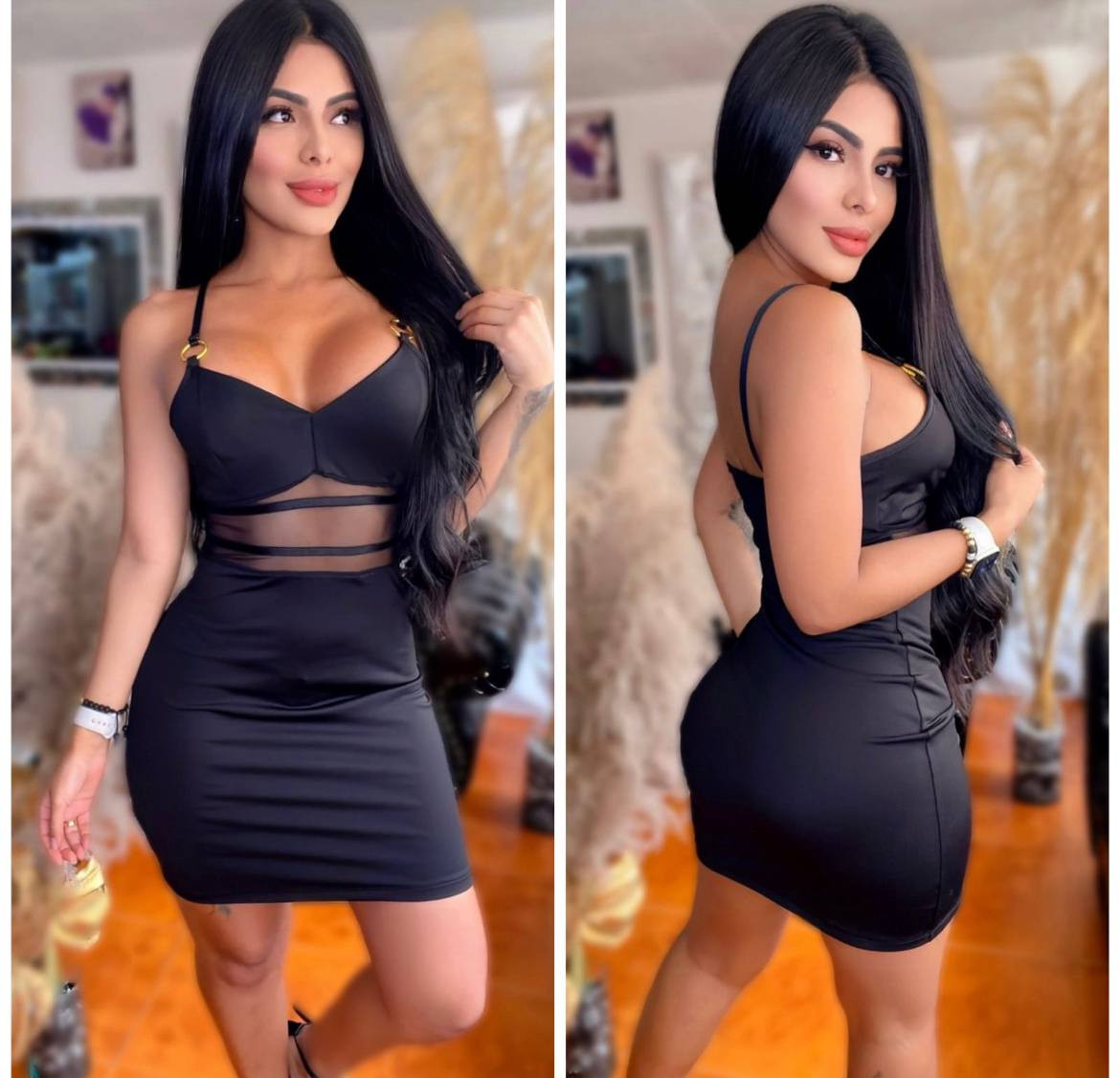 🖤 ¡Impacto y Sensualidad! Vestido Negro Bodycon con Detalles Dorados y Malla 🖤