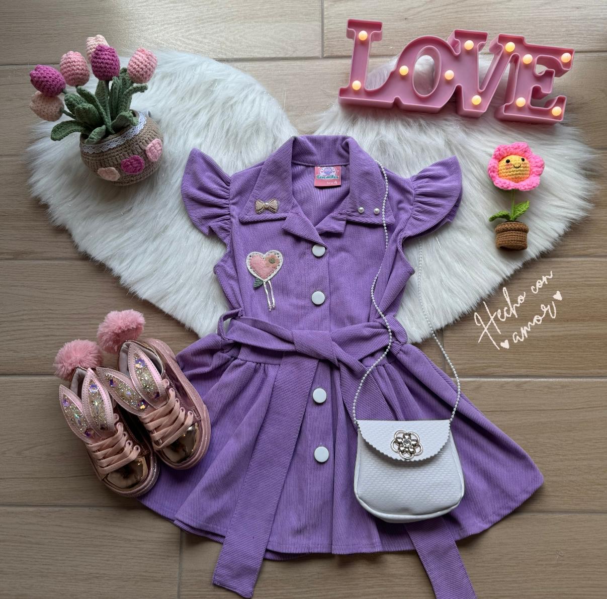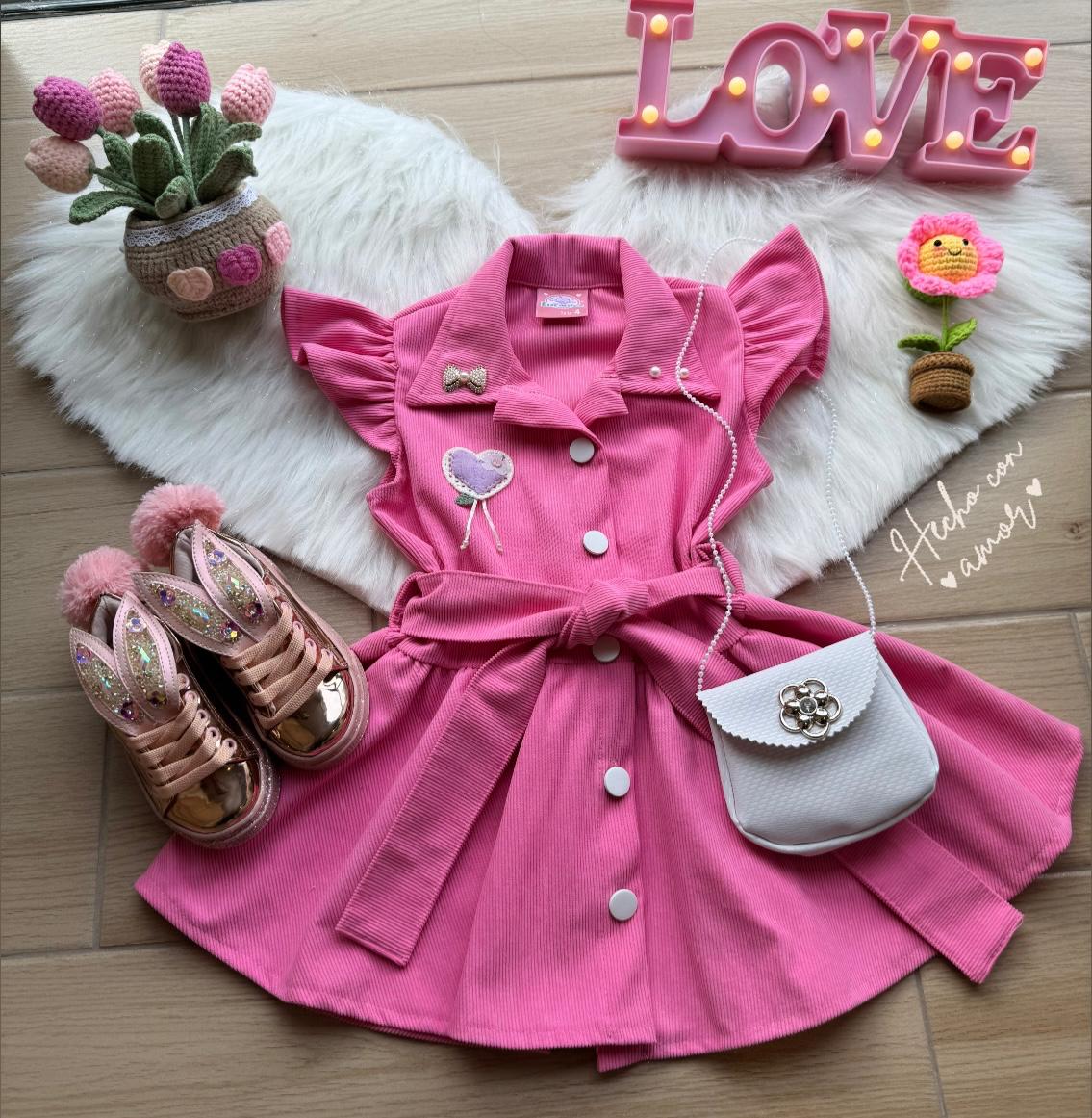 ¡Viste a tu niña con la moda más cómoda y adorable de la temporada! Este elegante Vestido en Pana combina la calidez y la suavidad de este material clásico con un diseño moderno y listo para cualquier ocasión, desde reuniones familiares hasta un día de escuela con estilo. ¡Y lo mejor de todo es que incluye un bolso a juego!